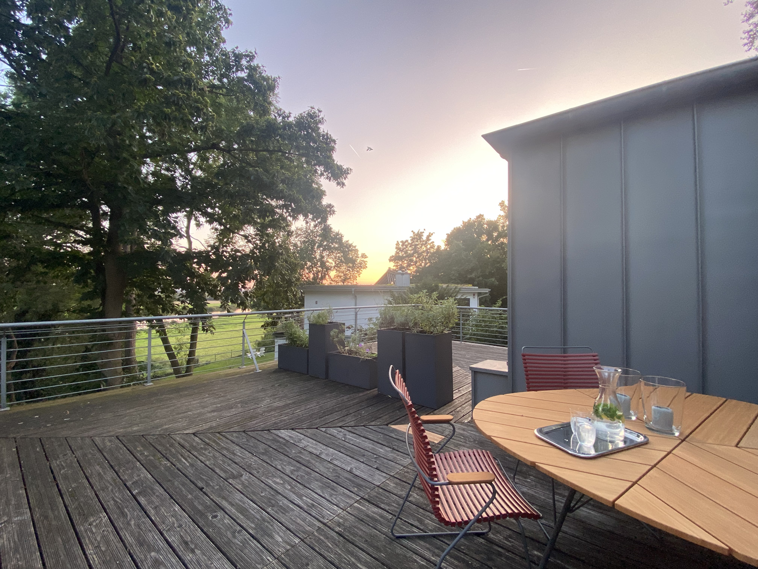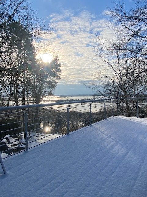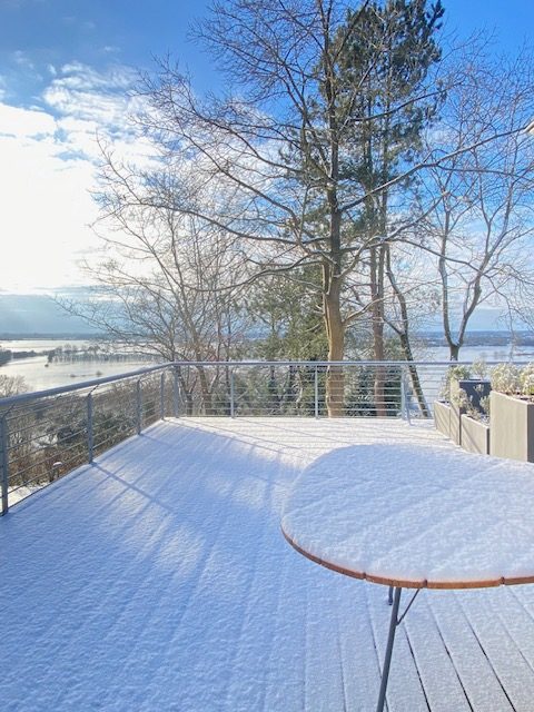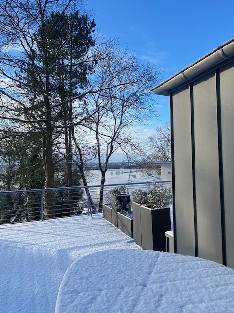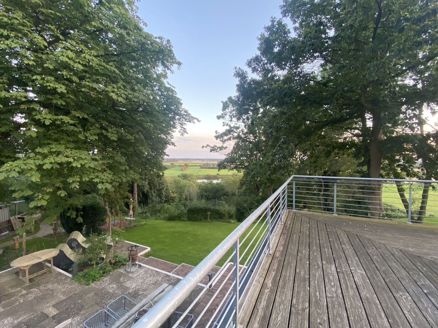 Genießen Sie den einmaligen Panoramablick auf die Weser von unserem großzügigen Balkon aus. Beobachten Sie entspannt die vorbeiziehenden Schiffe und lassen Sie Ihren Blick über die weite norddeutsche Landschaft schweifen. Dieser Ausblick wird Ihnen garantiert den Atem rauben und für unvergessliche Momente sorgen.